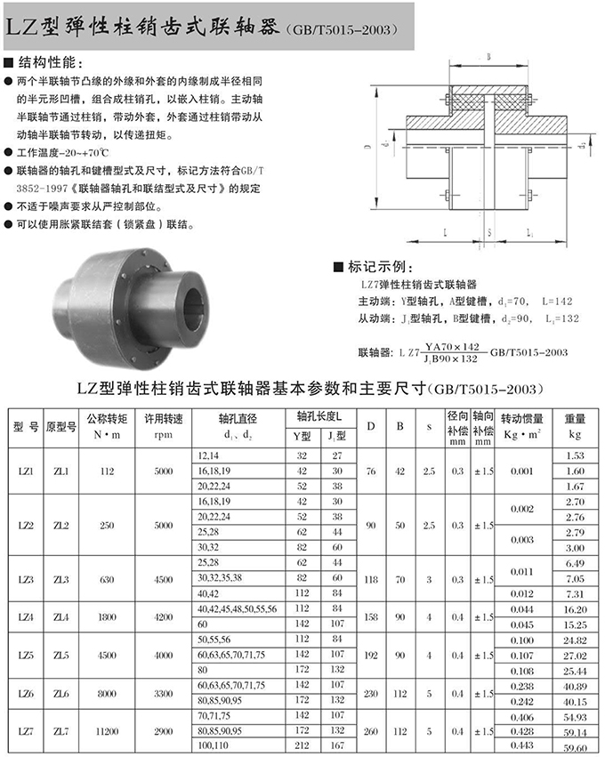 瑞安市寶德隆機(jī)械配件有限公司提供LZ型彈性柱銷齒式聯(lián)軸器具有拆裝方便,快速安裝等特點(diǎn),廣泛用于連接/固定輪轂孔和零件的軸,例如齒輪,錐齒輪,鏈輪,葉輪,凸輪,皮帶輪和飛輪等軸的聯(lián)結(jié)固定,咨詢電話:18906872378