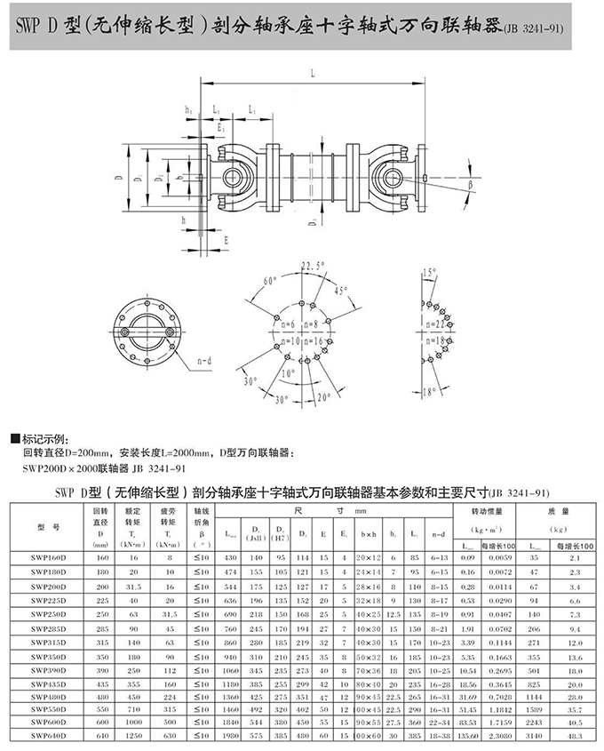 瑞安市寶德隆機(jī)械配件有限公司提供SWP D型(無伸縮長(zhǎng)型)部分軸承座十字軸式萬向聯(lián)軸器具有拆裝方便,快速安裝等特點(diǎn),廣泛用于連接/固定輪轂孔和零件的軸,例如齒輪,錐齒輪,鏈輪,葉輪,凸輪,皮帶輪和飛輪等軸的聯(lián)結(jié)固定,咨詢電話:18906872378
